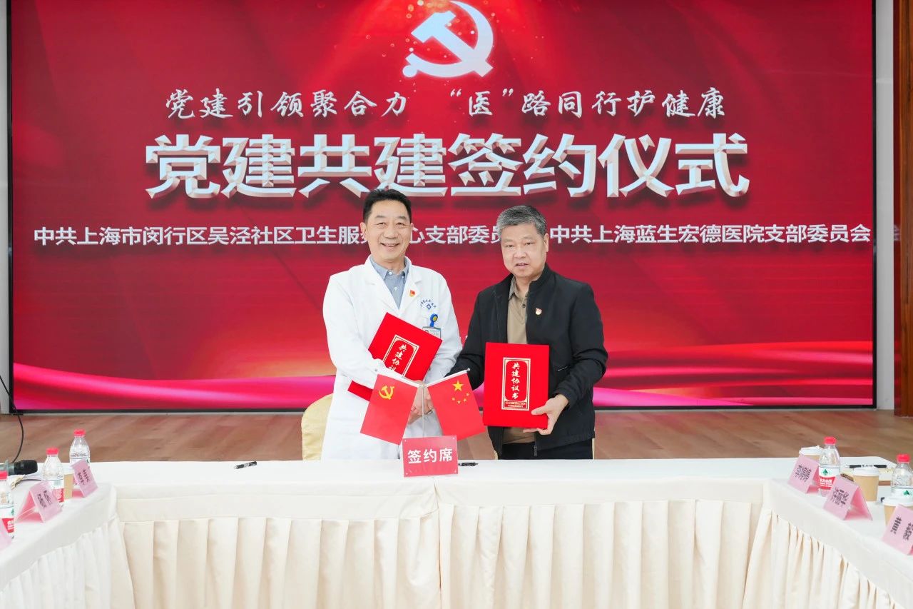 4月9日上午,吳涇社區(qū)衛(wèi)生服務(wù)中心與上海藍(lán)生宏德醫(yī)院黨建共建簽約儀式在藍(lán)生宏德醫(yī)院舉行。