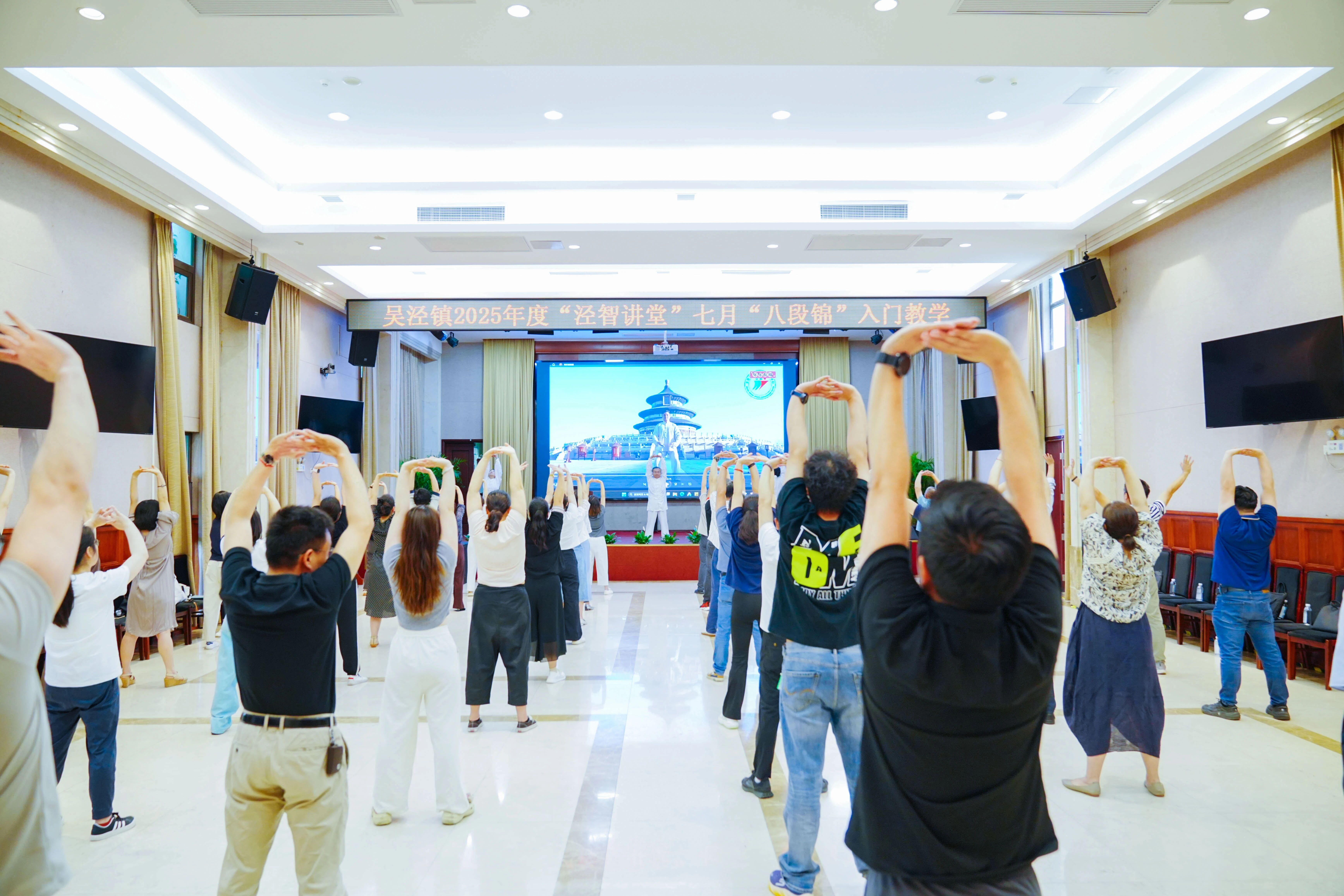 為踐行“科普賦能、助力健康”服務(wù)理念,遲冬清主任身體力行,在一場場健康宣講活動(dòng)中,積極推動(dòng)中醫(yī)養(yǎng)生文化的普及與傳播。今年以來,藍(lán)生宏德健康志愿服務(wù)團(tuán)隊(duì)先后在“涇智講堂”、退伍軍人服務(wù)站及屬地科技園區(qū)開展多場八段錦公益教學(xué),將傳統(tǒng)養(yǎng)生功法帶入社區(qū)、服務(wù)基層,深受群眾歡迎。
